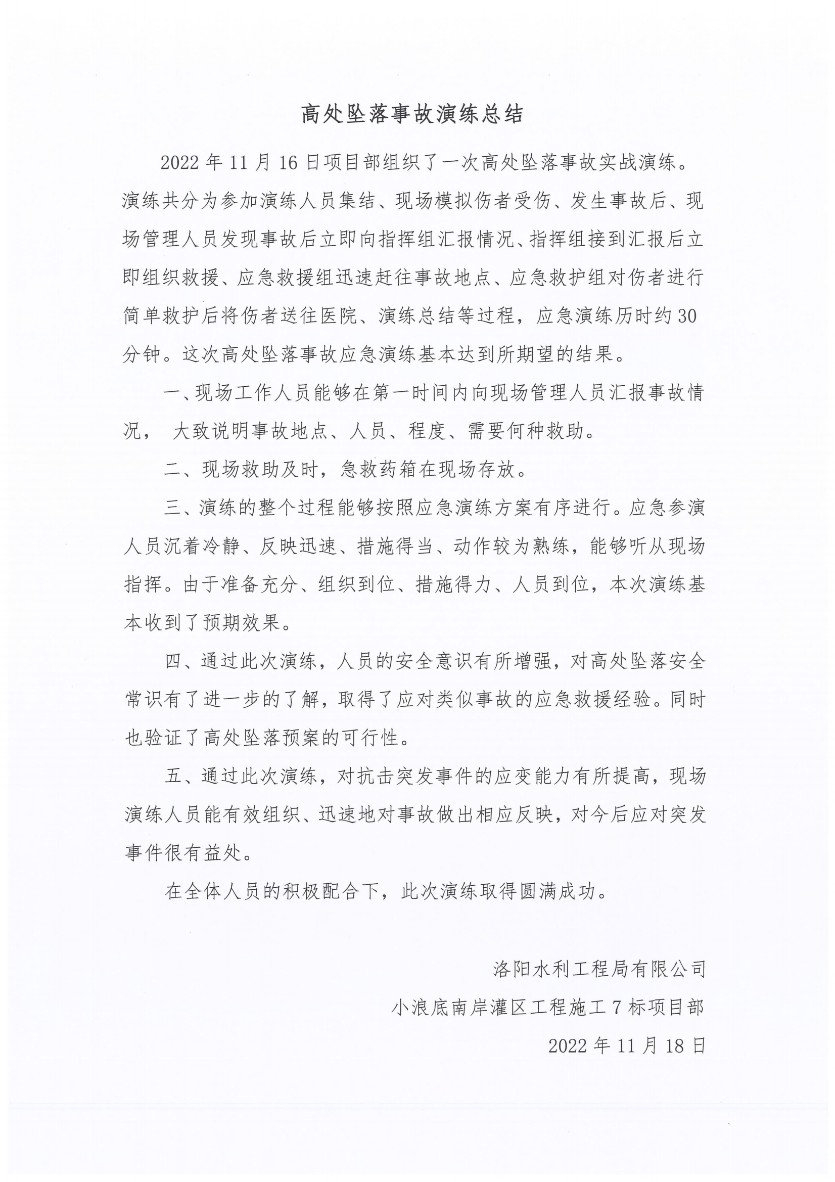 高墜事故應(yīng)急演練-7標(biāo)