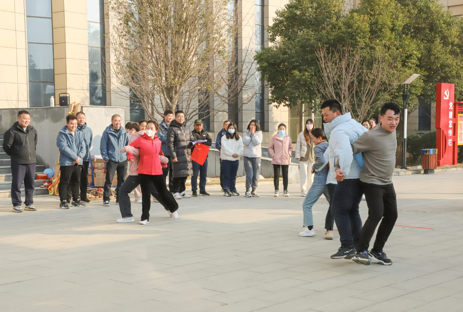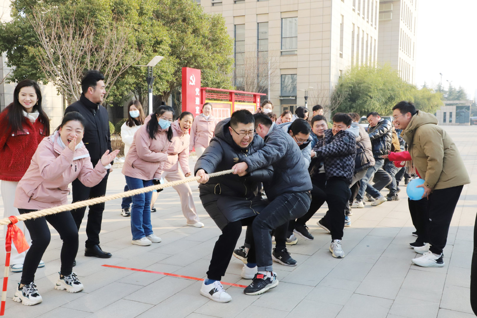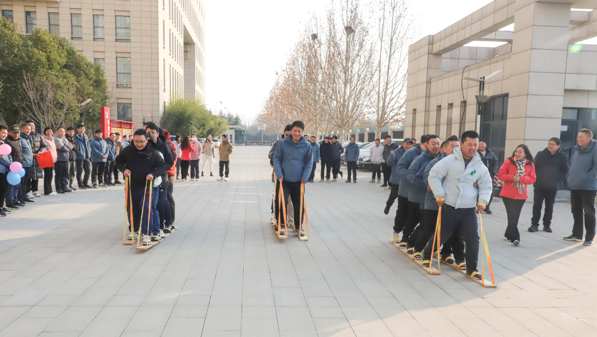 數(shù)九寒冬興賽事,熱情似火融冰雪。12月26日上午,公司在辦公大廈前廣場舉辦“喜迎元旦”趣味運(yùn)動會,公司機(jī)關(guān)和項(xiàng)目80余名員工參與了此次活動。公司常務(wù)副總經(jīng)理成益洋、紀(jì)委書記段曉平、監(jiān)事會主席孫海晶、總經(jīng)濟(jì)師暢瑞鋒、副總工華忠等領(lǐng)導(dǎo)親臨賽場,為運(yùn)動員加油助威。