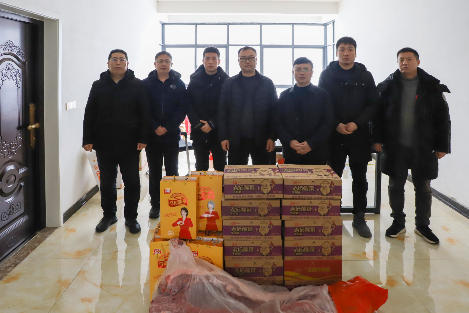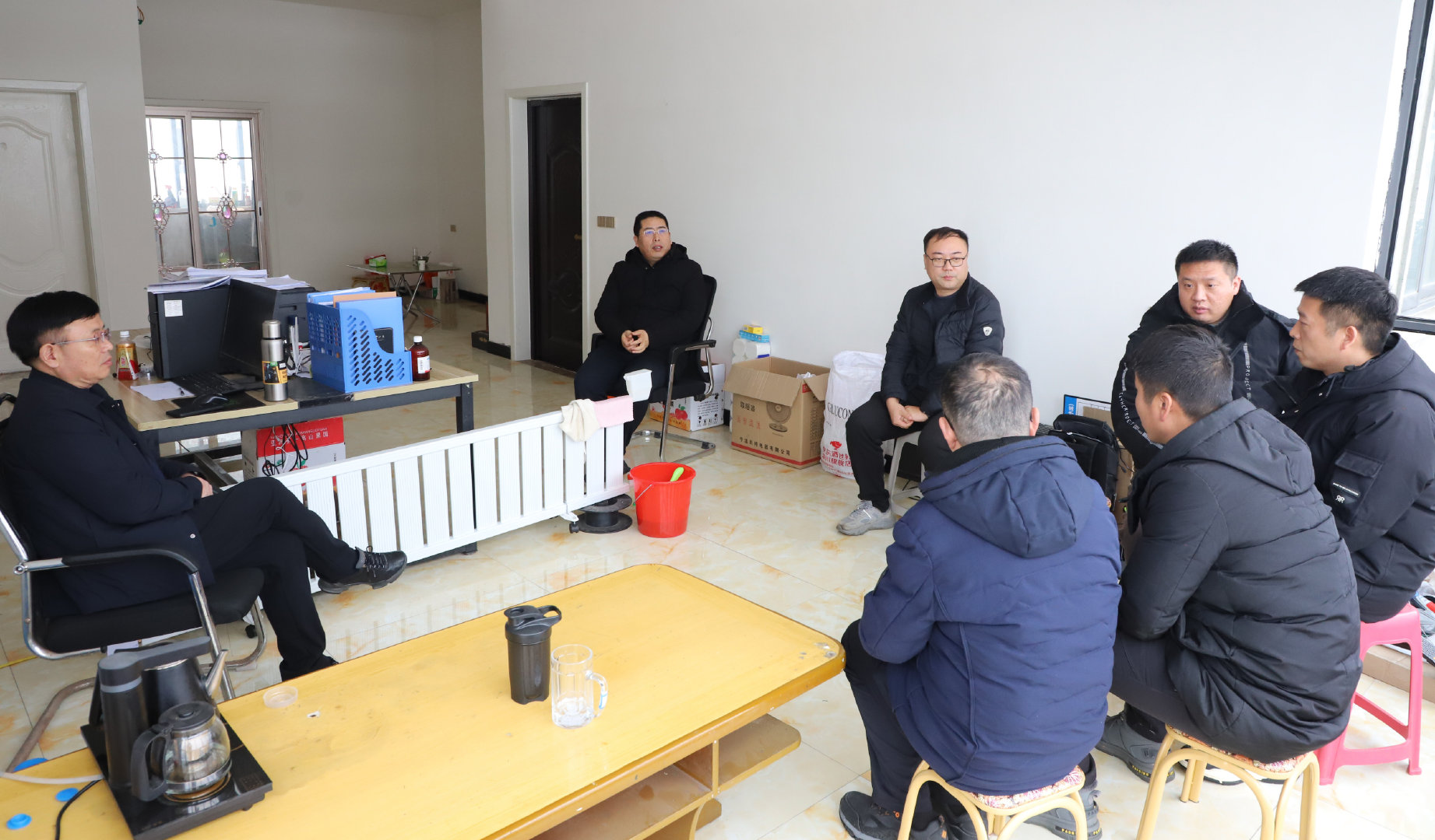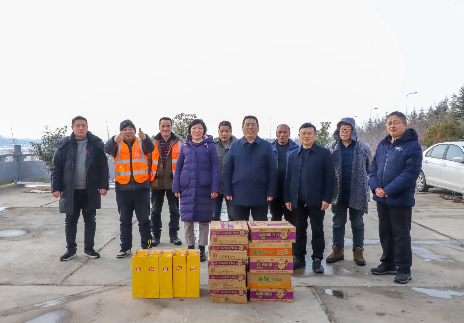 2月6日上午,公司領(lǐng)導(dǎo)又驅(qū)車前往欒川水庫項(xiàng)目現(xiàn)場,領(lǐng)導(dǎo)們對項(xiàng)目人員在過去一年中的辛勤工作表示肯定,并為大家送上了火腿腸、方便面、大肉等生活物資,這些貼心的慰問品讓一線員工感受到了公司的溫暖和關(guān)懷。領(lǐng)導(dǎo)們在慰問中表示,公司始終把員工的生活福祉放在心上,希望通過這次慰問活動,讓員工們能夠感受到家的溫暖,度過一個愉快祥和的春節(jié)。隨后,領(lǐng)導(dǎo)們與一線員工進(jìn)行了深入的交流,了解他們在工作和生活中遇到的困難和問題,鼓勵大家要保持積極向上的心態(tài),克服困難,為公司的發(fā)展貢獻(xiàn)力量。他們還特別強(qiáng)調(diào)了春節(jié)期間的安全生產(chǎn),叮囑員工要嚴(yán)格遵守操作規(guī)程,確保人身和設(shè)施安全。