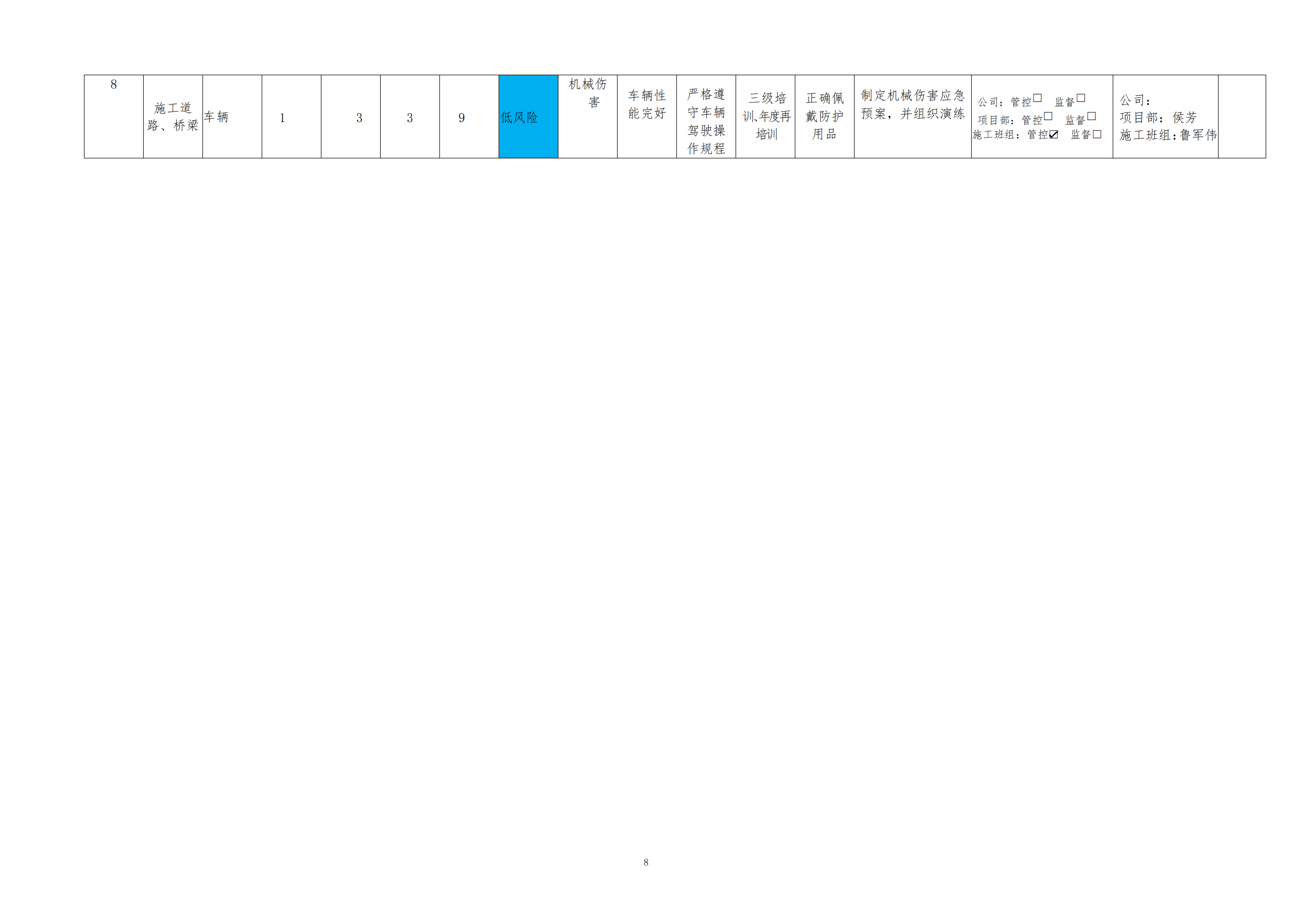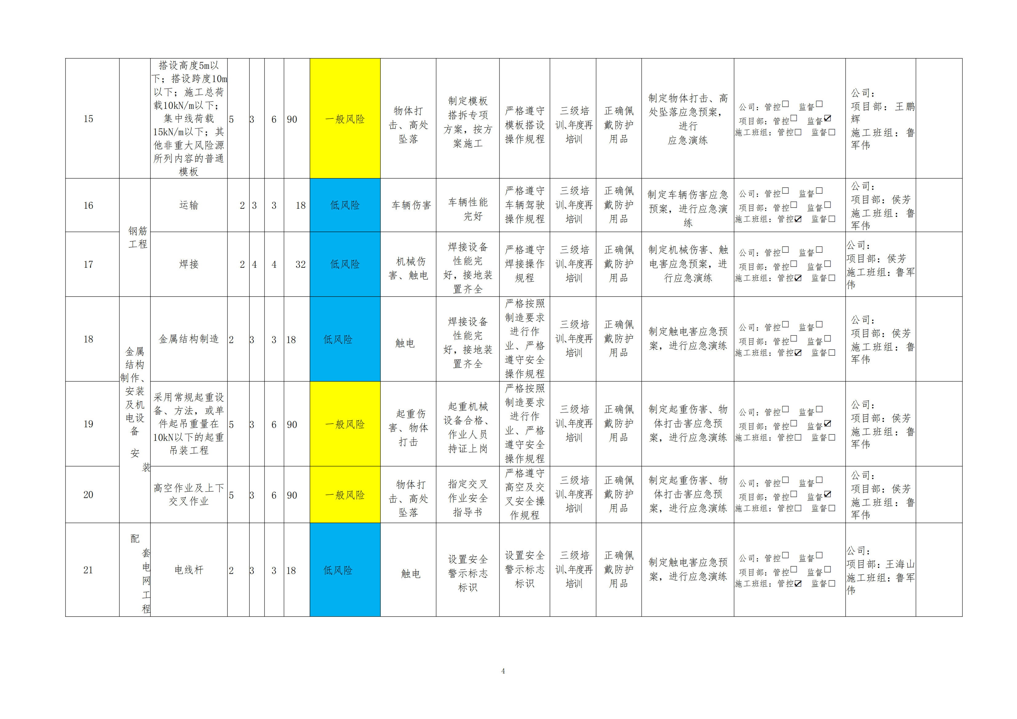 欒川縣新建水庫一期工程施工一標段危險源風險分級管控清單(4月)